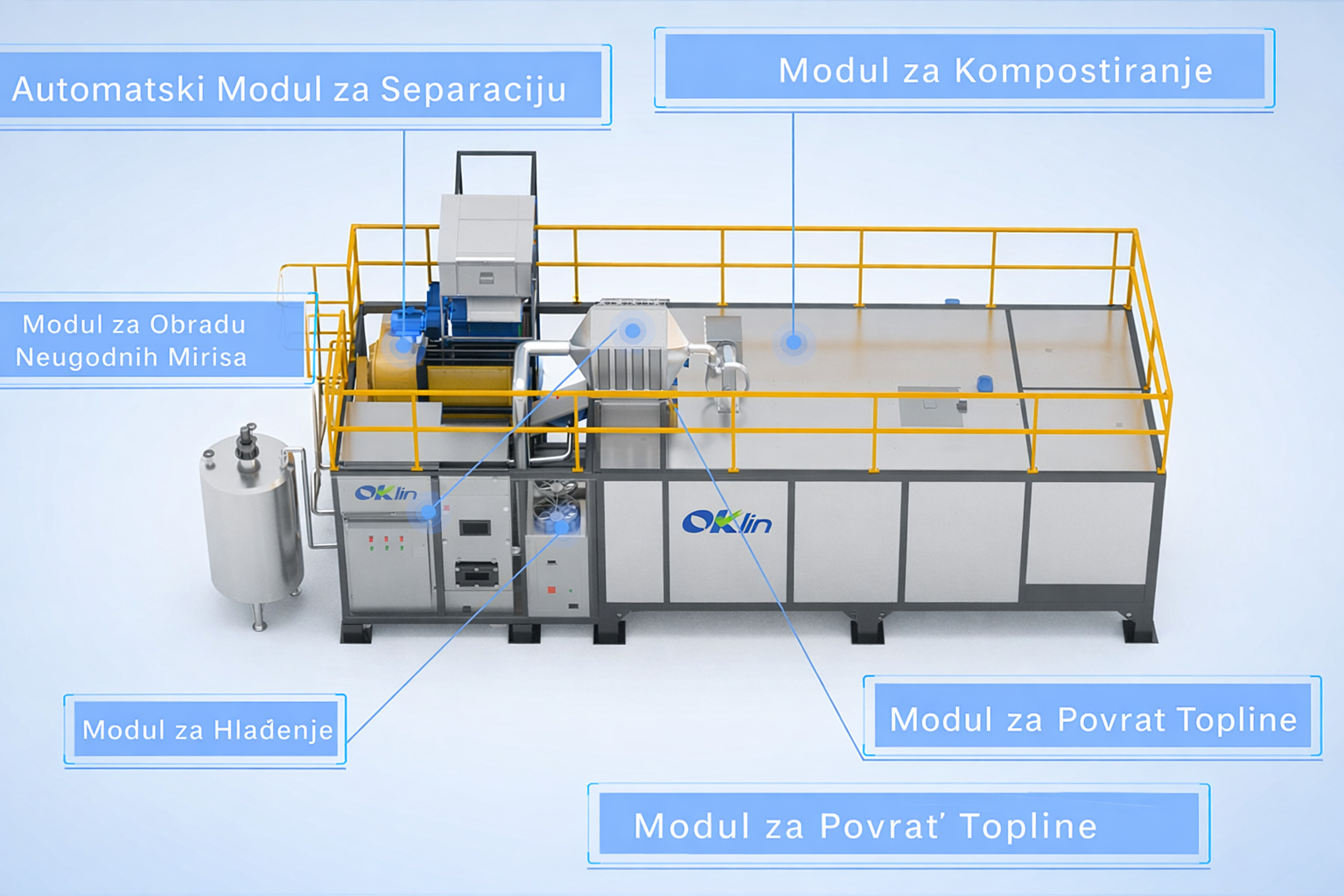 Oklin Orbit-Q ni zgolj stroj, temveč tehnologija, ki preoblikuje upravljanje bioloških odpadkov. S poudarkom na avtomatizaciji, procesni integraciji in visoki učinkovitosti omogoča prehod od klasičnega ravnanja z odpadki k trajnostno usmerjenemu, krožnemu delovanju.